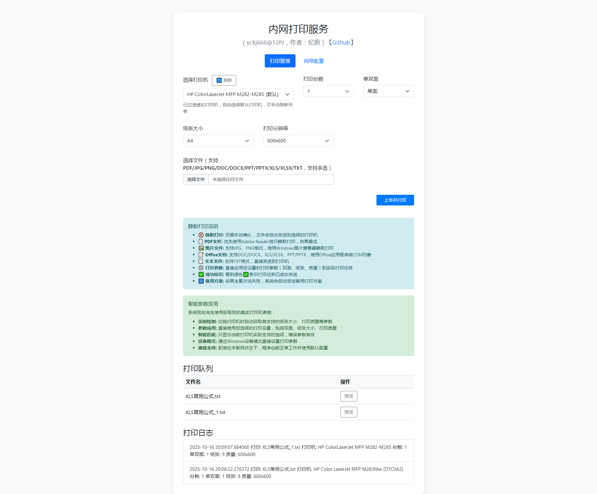 -打开一个网页就能打印:在局域网里,手机/电脑用浏览器访问,就能上传文件并打印。