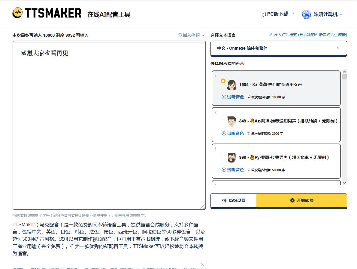 文本转语音, TTSMaker, 马克配音, T