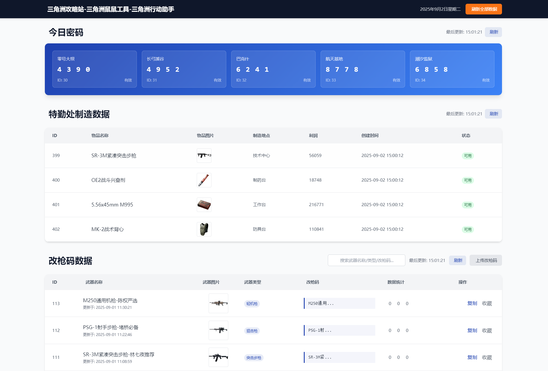 每日密码特勤处制造改枪码分享